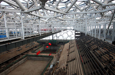 Inside the Water Cube when last cushion was sealed - newsphoto