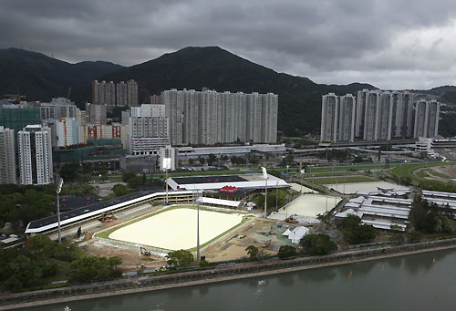 2008 Olympic Games near Shatin race track in Hong Kong is lit up in this