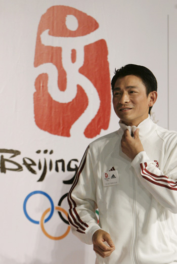 Hong Kong singer Andy Lau attends a "One Year to Go" Olympic countdown event at a shopping mall in Hong Kong August 6, 2007. [Reuters]