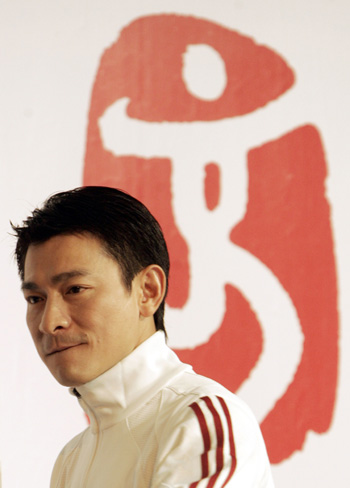 Hong Kong singer Andy Lau attends a "One Year to Go" Olympic countdown event at a shopping mall in Hong Kong August 6, 2007. [Reuters]