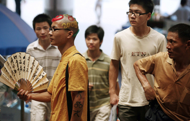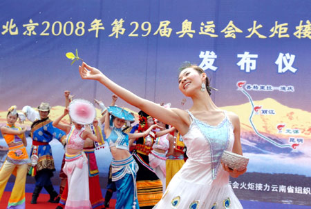 People walk to promote the 2008 Beijing Olympics at Nanjing Road in Shanghai June 10, 2007. About a thousand local residents took part in the 1 km (0.6 miles) event.[Reuters]