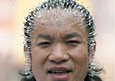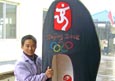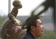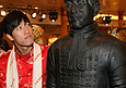 World top hurdler Liu Xiang closely examine a terracotta warrior made after his face at the welcoming party of the Olympic-themed extravaganza "Grand Ceremony of Xi'an 2006," in northwestern China's Xi'an on October 20, 2006. A stellar lineup has graced the feast to promote the Beijing Olympic Games slated for 2008. [Xinhua]