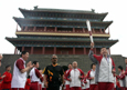 Chinese athlete Yang Ling runs with the torch during the 15th Asian Games Doha 2006 Torch Relay at Tiananmen Square in Beijing October 22, 2006. The relay is the longest in the history of the Games, travelling 50,000 kms to 15 countries and regions in 55 days before returning to Doha for the opening ceremony of the 15th Asian Games. [Reuters]