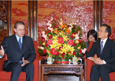 International Olympic Committee President Jacques Rogge (L) meets Chinese Premier Wen Jiabao at the Zhongnanhai compound in Beijing October 25, 2006.[Reuters]