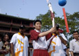Indonesian badminton player Taufik Hidayat runs with the torch during the 15th Asian Games Doha 2006 Torch Relay in Jakarta October 29, 2006. The relay is travelling 50,000km (31,000 miles) to 15 countries and regions in 55 days before returning to Doha for the opening ceremony of the 15th Asian Games. [Reuters]