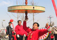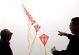 Kite-maker Lu Hailong flies his new kite from a square in Hefei, capital of central China's Anhui Province October 25. Lu created the 2008-meter-long kite in honour of the 2008 Olympics. It is made of a cluster of various Peking Opera masks and took half a year to build. [Newsphoto]