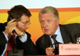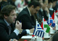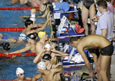 Pieter van den Hoogenband of the Netherlands talks to a team official during a swimming training session at the World Aquatics Championships in Melbourne March 22, 2007.[Reuters]