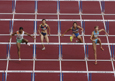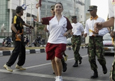 Former Olympic athletes Carl Lewis (R) and Mike Marsh sprint during a sport show at the America's Cup Port in Valencia April 11, 2007. [Reuters]