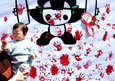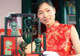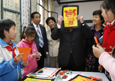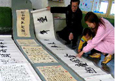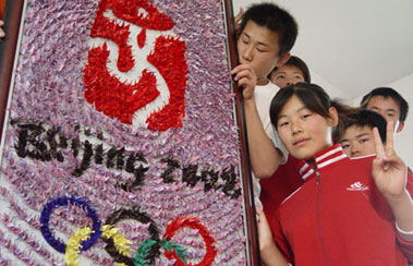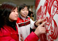 A student present her paper-cut of Beijing 2008 Olympic Games mascot Nini and Yingying on the Christmas day. College student and teachers from Shanxi Water Conservancy Profession College join in the a paper-cut competitation on campus to hail the upcoming new year and Beijing Olympic Games.[newsphoto]