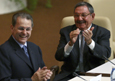 International Olympic Committee President Jacques Rogge (L) and Raul Castro, head of Cuba's armed forces and second in the Cuban hierarchy after ailing brother Fidel Castro, share a laugh during the inauguration of the International Sport for All Congress in Havana November 1, 2006.[Reuters]
