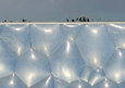 Workers work atop of the National Aquatic Center, nicknamed the "Water Cube", in Beijing November 4, 2006. The installation of inflatable films of the center has been completed. [newsphoto]