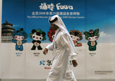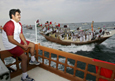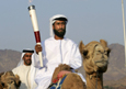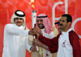 Torch relay ambassador Sheikh Joaan Bin Hamad Al-Thani arrives with the flame on Day 49 of the 15th Asian Games Doha 2006 torch relay event, aboard Al Shaqhab Amiri Dhow, in Al-Shamal, Qatar November 25, 2006. The relay is the longest in the history of the Games, travelling 50,000 km (31,069 miles) to 15 countries and regions in 55 days, returning to Doha for the opening ceremony Asian Games. [Reuters]