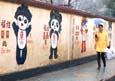 A citizen passes by a olympic mascot Fuwa-theme fresco on the wall of the Jinan Qinglong street,Jinan,capital of Shandong Province November 28,2006.[newsphoto]