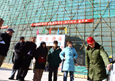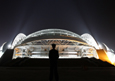 Workers slowly move a new panel into position on the deflated roof of BC Place sports stadium in Vancouver, British Columbia, January 12, 2007. The roof collapsed during a storm January 5 after an overzealous effort to keep the domed fabric roof inflated ended up helping it fail. The stadium is to be the site of the opening and closing ceremonies of the 2010 Winter Olympic Games. [Reuters]