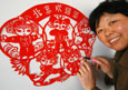 Handicraftsman Du Juan from Anhui Province poses a photo with his paper-clipping works, titled "Welcome to Beijing" in honor of upcoming Beijing Olympic Games on April 2,2007.[newsphoto]