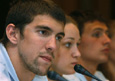 Swimmer Michael Phelps of the US,Olympic gold medalist and world champion, smiles in front of the logo of the 2008 Beijing Olympic Games at a news conference in Beijing April 9, 2007. Phelps and his teammates are in Beijing on a goodwill trip to promote the sport of swimming, the 2007 Special Olympics World Summer Games in Shanghai and the 2008 Olympics Games in Beijing.