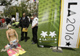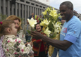 Toby Dawson (2nd R), South Korean-born U.S. bronze medallist in the men's freestyle moguls event at the 2006 Turin Winter Olympics, and his wife Leah Halmi from the U.S. look at flying chickens during their Korean traditional wedding ceremony at a hotel in Pusan May 24, 2007. Dawson, an adoptee who has found his biological Korean father recently through a DNA sample test, is an honorary ambassador for the 2014 Pyeongchang Winter Olympics bid committee. [Reuters]
