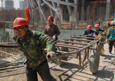 A labourer works inside the National Olympic Stadium, also known as the "Bird's Nest", which is still under construction in Beijing May 17, 2007. China has pulled out all the stops in its attempts to curb pollution and Olympic officials are confident air quality will be good come the 2008 Games. [Reuters]