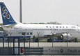 A German policeman in a protection suit walks in front on Olympic Airways plane after an emergency landing at Munich's international airport April 23, 2007. The plane carrying Greek EU officials made an emergency landing at Munich airport after a bomb threat was made, a spokeswoman for the German air traffic control authority said.[Reuters]