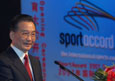 International Olympic Committee President Jacques Rogge (L) and China's Premier Wen Jiabao (R) attend the opening ceremony of SportAccord, an annual convention hosted by the General Association of International Sports Federations, in Beijing April 24, 2007. [Reuters]