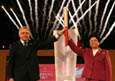 International Olympic Committee (IOC) President Jacques Rogge and Mrs Portia Simpson Miller.[IOC]