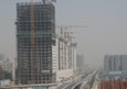 The National Stadium, dubbed with 'Bird Nest'has been under construction.