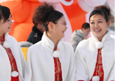 Pretty tray bearers of 6th Asian Winter Games talk with each others during the break session in Changchun,northeast China's Jilin Province, Feb.2,2007.[Xinhua]