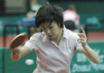 Zhang Yining of China table tennis team plays a shot to her trail horse Hu Bingtao during a warmup game held in Xingtai, north China's Hebei Province.Zhang wins over Hu 3-1.The team is preparing for the Asian Games starting on this December 1 in Doha. [Xinhua]