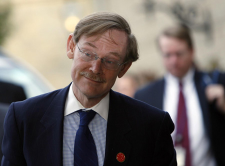 World Bank President Robert Zoellick arrives at a hotel, where the G20 Finance Ministers meeting will be held, near Horsham in southern England March 13, 2009. [Agencies]