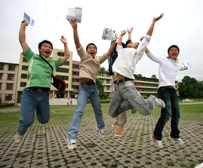 Updated: 2007-06-08 21:45 Five students jump for fun after they finish the two-day national college entrance exams, or Gaokao, on a high school campus in Miaoshui county, South China's Guangxi Zhuang Autonomous Region June 8, 2007. [Xinhua] ![]() ![]()