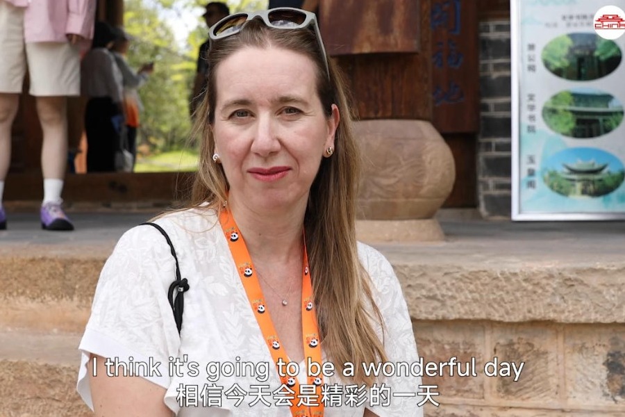 | A woman draws on a wall in Central district, Hong Kong.[Photo/Agencies] |