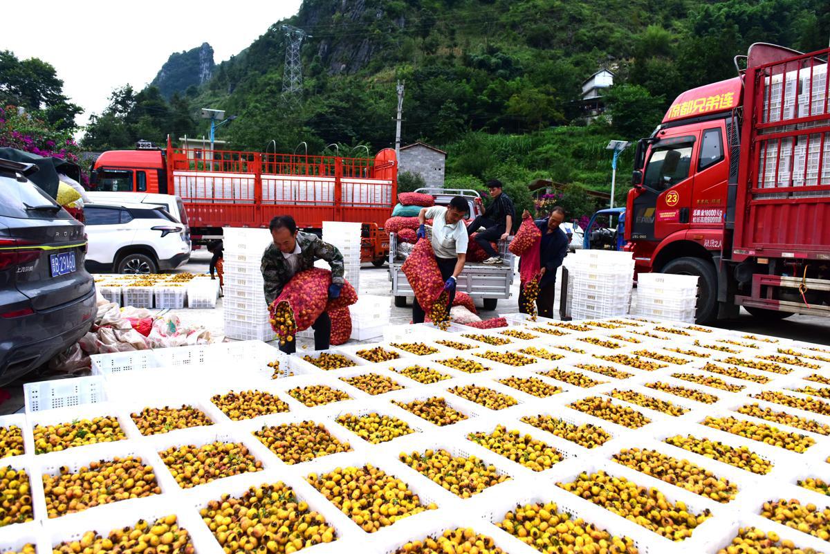 Wang Tianyong, a resident of Cuobo village in Shuicheng, has reaped his best harvest of thorn pears this year — approximately 10,000 kilograms. He expressed his gratitude for the support given to fruit farmers by companies and made up his mind to plant more thorn pears in the coming year.