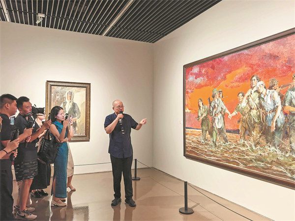 Xu Jiang at The 30-Year Retrospective of the China Oil Painting Society. The exhibition showcases more than 800 artworks by 370 artists at the Shanghai Art Museum from Sept 19 to Jan 4. [Photo provided to China Daily]