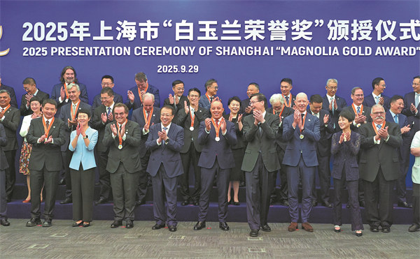 The Shanghai Municipal Government confers the 2025 Magnolia Gold Award on 28 foreign nationals and the Honorary Citizen of Shanghai on two expatriates on Sept 29. [Photo by Gao Erqiang/China Daily]