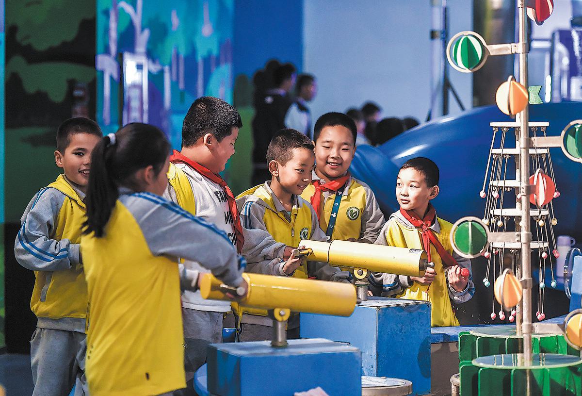 Elementary school students try interactive exhibits at the Xinjiang Science and Technology Museum in Urumqi, Xinjiang Uygur autonomous region, on Sept 18. LIU XIN/CHINA NEWS SERVICE