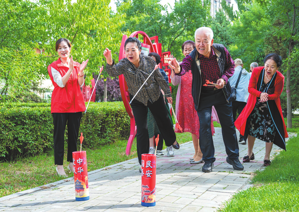 Seniors play touhu, or arrow throwing, in a park located at a center for home and community-based eldercare services in Hohhot, the capital of the Inner Mongolia autonomous region, on Sept 11. DING GENHOU/FOR CHINA DAILY