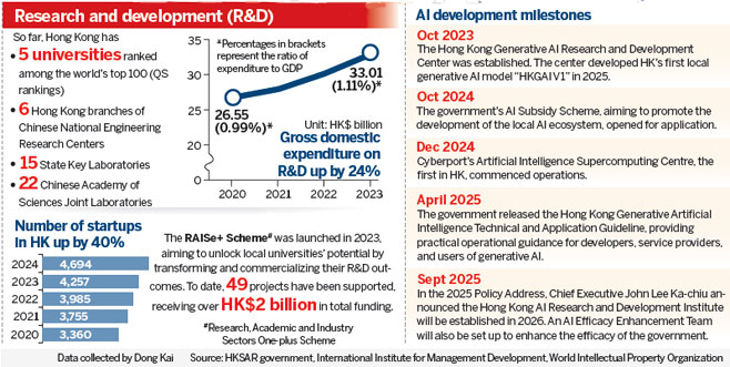 Editor's note: This is the fifth part of China Daily's eight-installment data series on Hong Kong's development as "eight centers" under the nation's 14th Five-Year Plan (2021-25). This part focuses on the city's role as an international innovation and technology center.