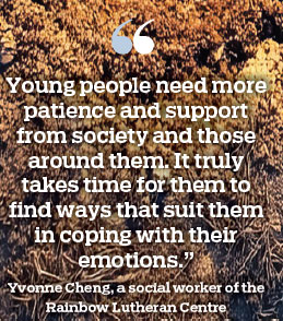 "Young people need more patience and support from society and those around them," urges Cheng. "It truly takes time for them to find ways that suit them in coping with their emotions."