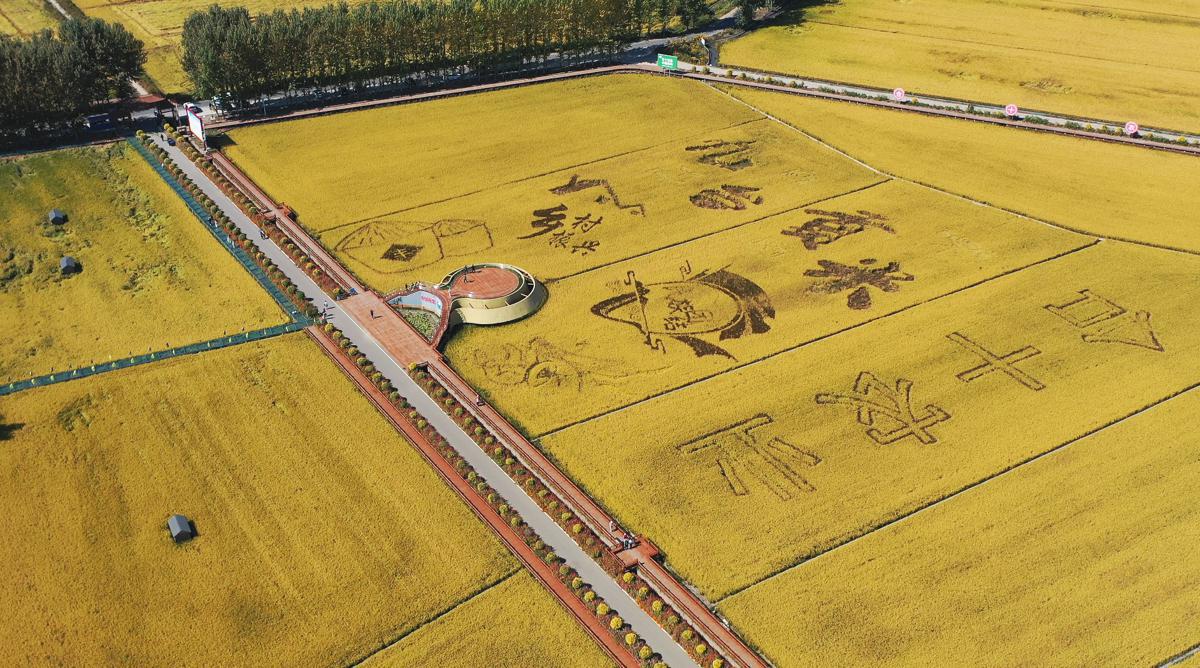 Jilin farmers use agricultural machines to harvest rice in golden autumn fields