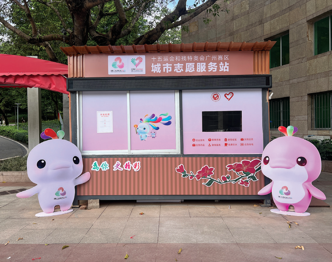 Nearly 100 volunteer service stations in Guangzhou have been coated with a special paint that reflects sunlight and radiates heat away. When applied to buildings, this technology — developed by the Guangzhou HKUST Fok Ying Tung Research Institute — can cool surfaces by over 15 degrees C and indoor spaces by 3 to 5 degrees, making it well-suited to South China's intense heat. It is expected to reduce carbon dioxide emissions by nearly 200 metric tons during the event.