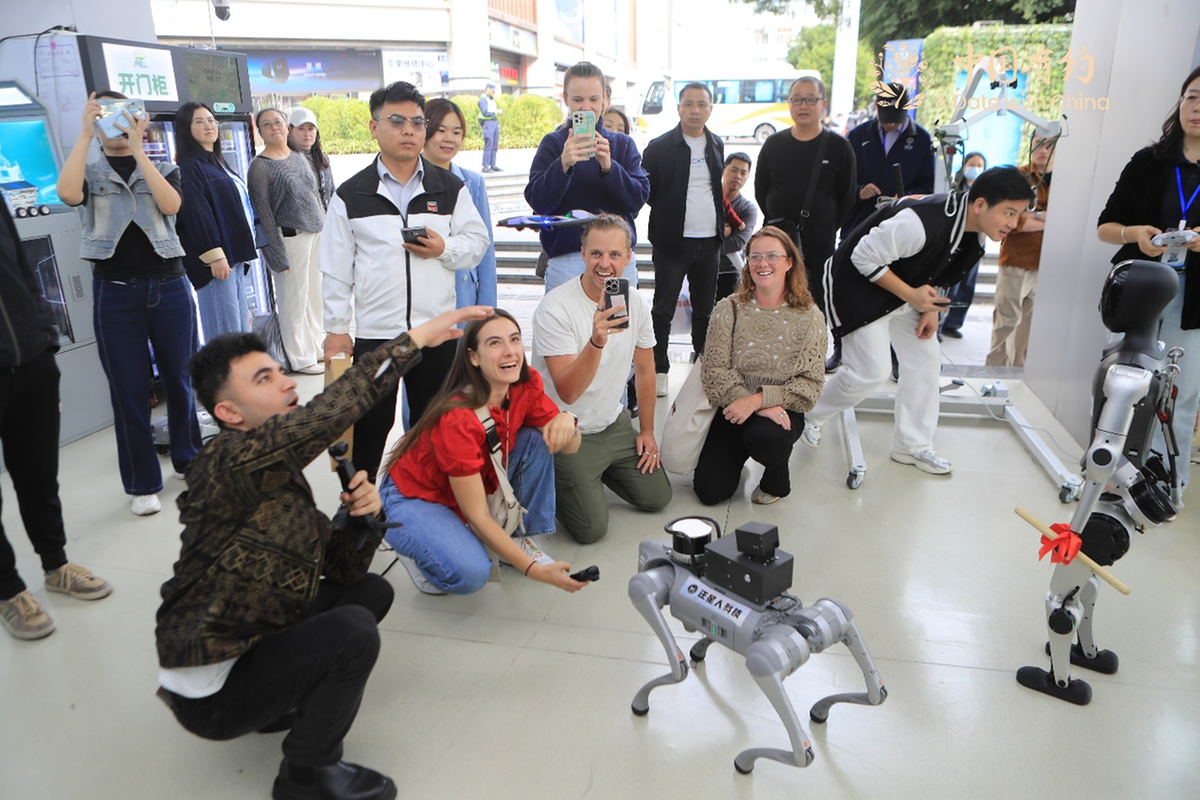 Participants on the 2025 "A date with China" international media tour enjoy a robot performance at "Futian Wings" Pengcheng Low-altitude UAV Exhibition Center in Shenzhen, Guangdong province, on Nov 27, 2025. [Photo/chinadaily.com.cn]