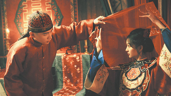 A scene from the drama Legend of the Magnate: The two protagonists, commercial genius Gu Pingyuan and his beloved Chang Yu'er at their wedding ceremony. [Photo provided to China Daily]