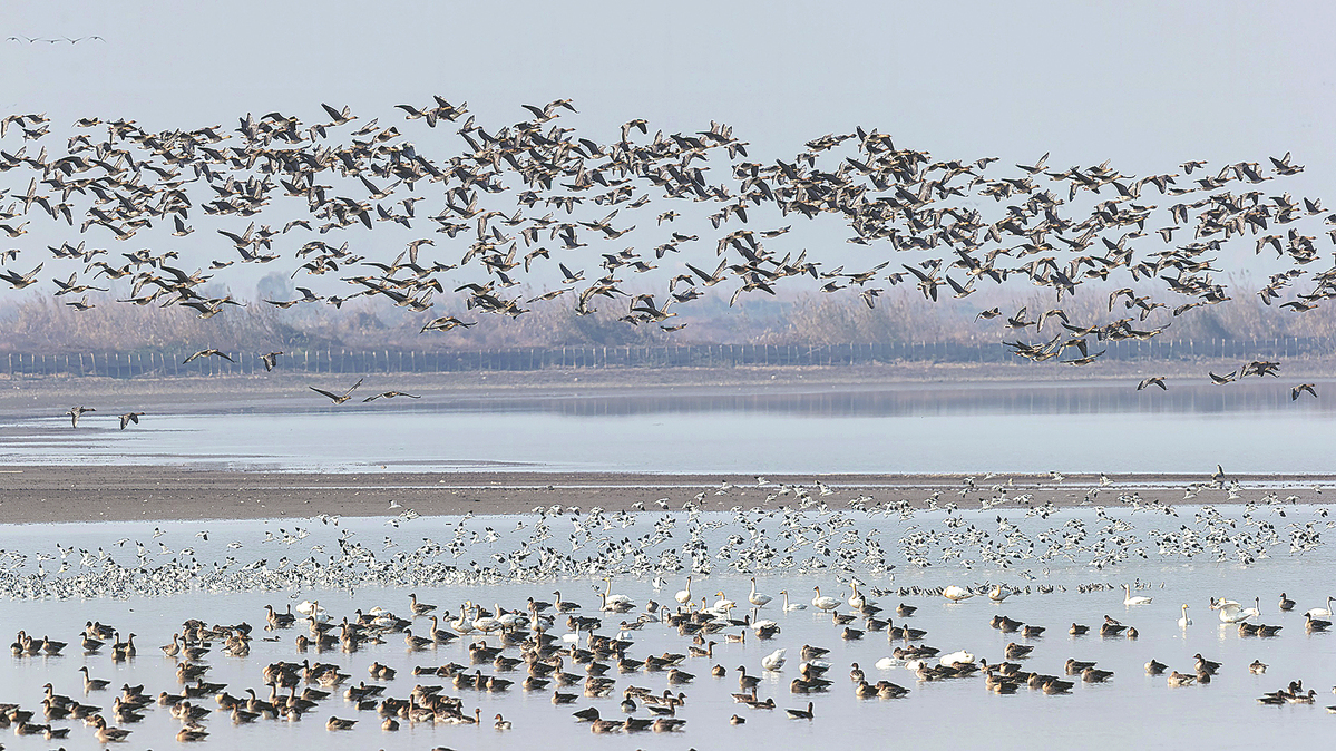 Birds gather in the morning fog at the Chenhu Wetland Nature Reserve in Wuhan, Hubei province. WEI BIN/FOR CHINA DAILY