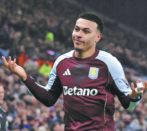Aston Villa's Morgan Rogers celebrates scoring on Sunday. AFP