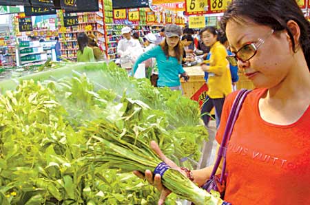 fresh vegetables at a department store near Donghuan Road in Suzhou, East
