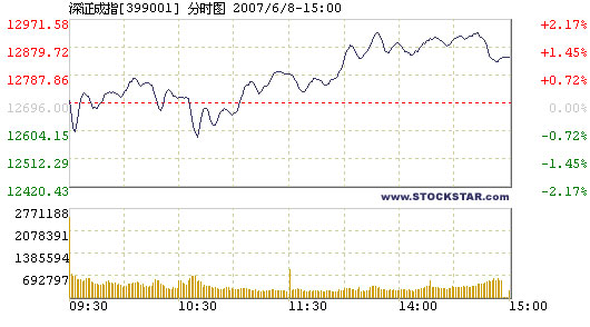 The Shenzhen Component Index, tracking the smaller Shenzhen Stock Exchange, closed at 12,850.69, up 154.68 points or 1.22 percent. It went through the day within a range from 12,580.43 to 12,930.19.