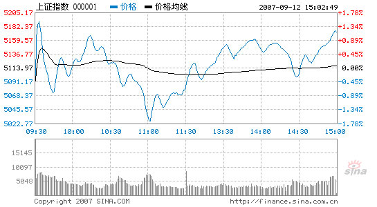 The Shanghai Composite Index closed at 5,172.63, up 58.66 points or 1.15 percent from yesterday's close. The index rocketed to its highest of 5,192.30 right after a lower opening at 5,092.58. Then it lost support and slid all the way down to the lowest 5,025.34 soon before the noon break, where it turned up again. Following a few hikes and drawbacks, the index managed to take back the lost 5,100 ground at the close.