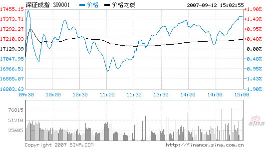 The Shenzhen Component Index finished at 17,398.41, up 269.02 points or 1.57 percent. Opening lower at 17,068.46, it went through the day within a range between 16,944.11 and 17,453.37.