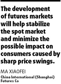 Updated: 2007-12-13 16:43 Financial industry leaders have reaffirmed the importance of developing the futures market to achieve balanced and sustainable economic growth. Shang Fulin, head of the China Securities Regulatory Commission (CSRC), stressed the importance of steady development of the futures market at the commission's meeting on December 6. Economists have long held that the futures market plays a crucial role in stabilizing commodity prices by facilitating timely price discoveries and enabling growers, wholesalers and processors to make long-term plans. "Futures markets allow growers and buyers to hedge against short-term price fluctuations caused by temporary imbalances in supply and demand," said Li Jingyuan, an analyst at Haitong Futures Co in Shanghai. The futures market is widely seen to have a real, though indirect, impact on the daily lives of the people. Its pricing role is of particular significance when inflation is fueled, at least partly, by disruptions in the supply of agricultural produce like pork.