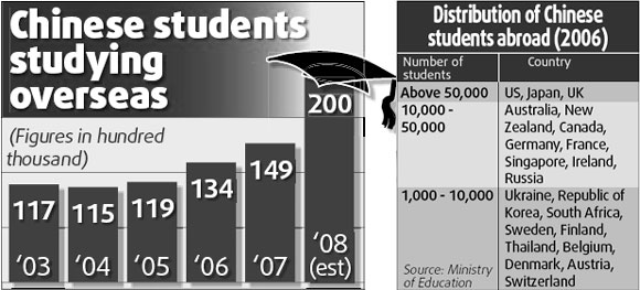 The number of students going abroad for studies is estimated to reach 200,000 this year.